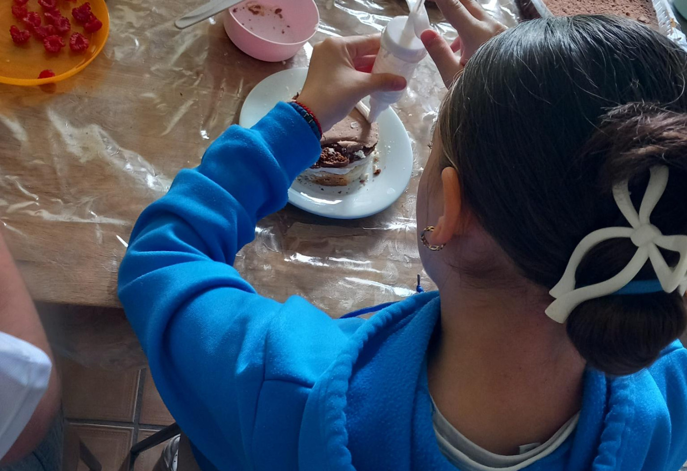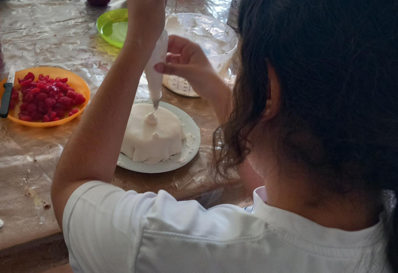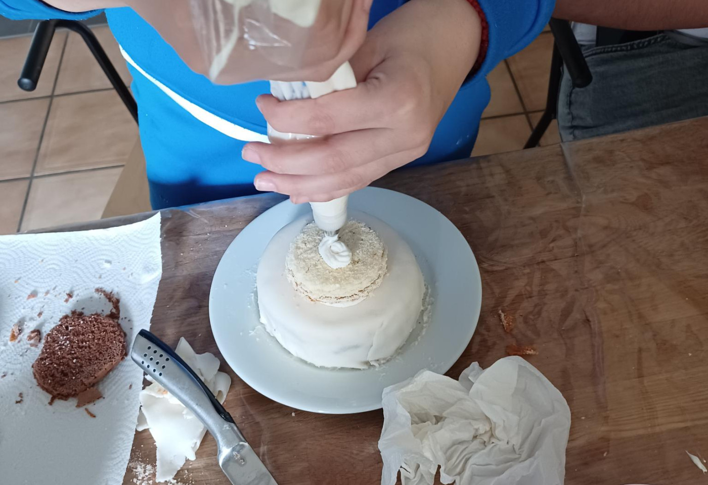 Achtsamkeit, sichere Hand und viiiiel Geduld braucht es für eine schöne Torte! Unsere Kinder und Jugendlichen vertieften sich in die Herstellung. Sie tauschten sich währendessen rege aus, gaben sich Tipps, recherchierten im Internet und konkurrierten: Welches kulinarische Kunstwerk ist das Schönste? Wer sich Mühe gibt ist, eindeutig im Vorteil.